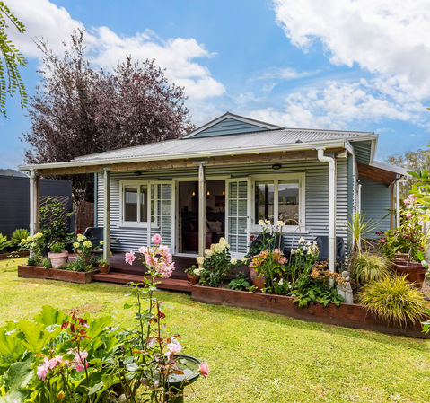 The home has been thoughtfully upgraded, retaining handcrafted features that reflect its original character while introducing modern finishes for easy living. A covered verandah extends the living space outdoors and connects seamlessly with the surrounding gardens, creating a functional extension of the home.
